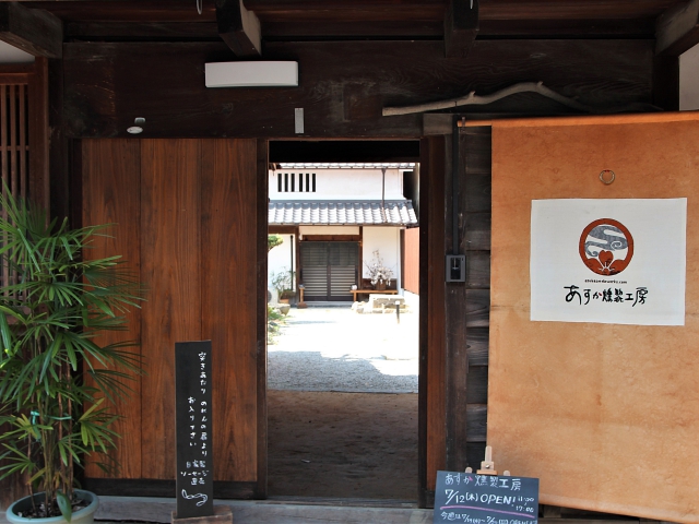 岡寺参道沿いに立地の燻製工房。奈良きたまち「さくらバーガー」の直営工房です。
