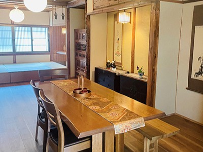 日本の伝統的な畳、床の間や飾り柱、数々の小道具で仕上げられており、随所で日本の伝統を感じることができます。大型犬との滞在も可能。