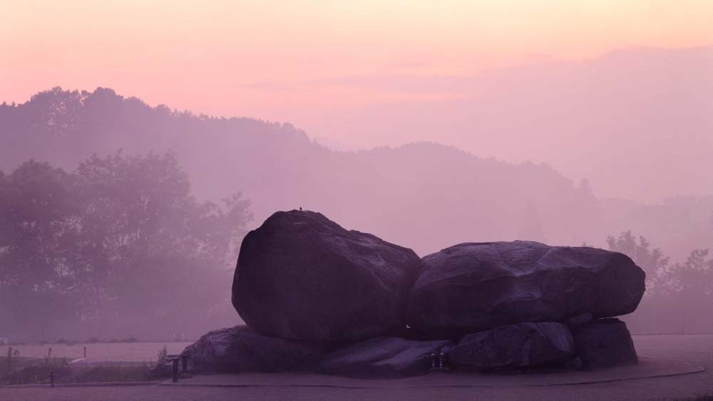 天井石だけで約77トン、大型バス約7台分の重さに相当します。さらに、石室は30数個の巨石を積み上げてつくられており、その総重量は、約2300トンにも及ぶと推定されます。