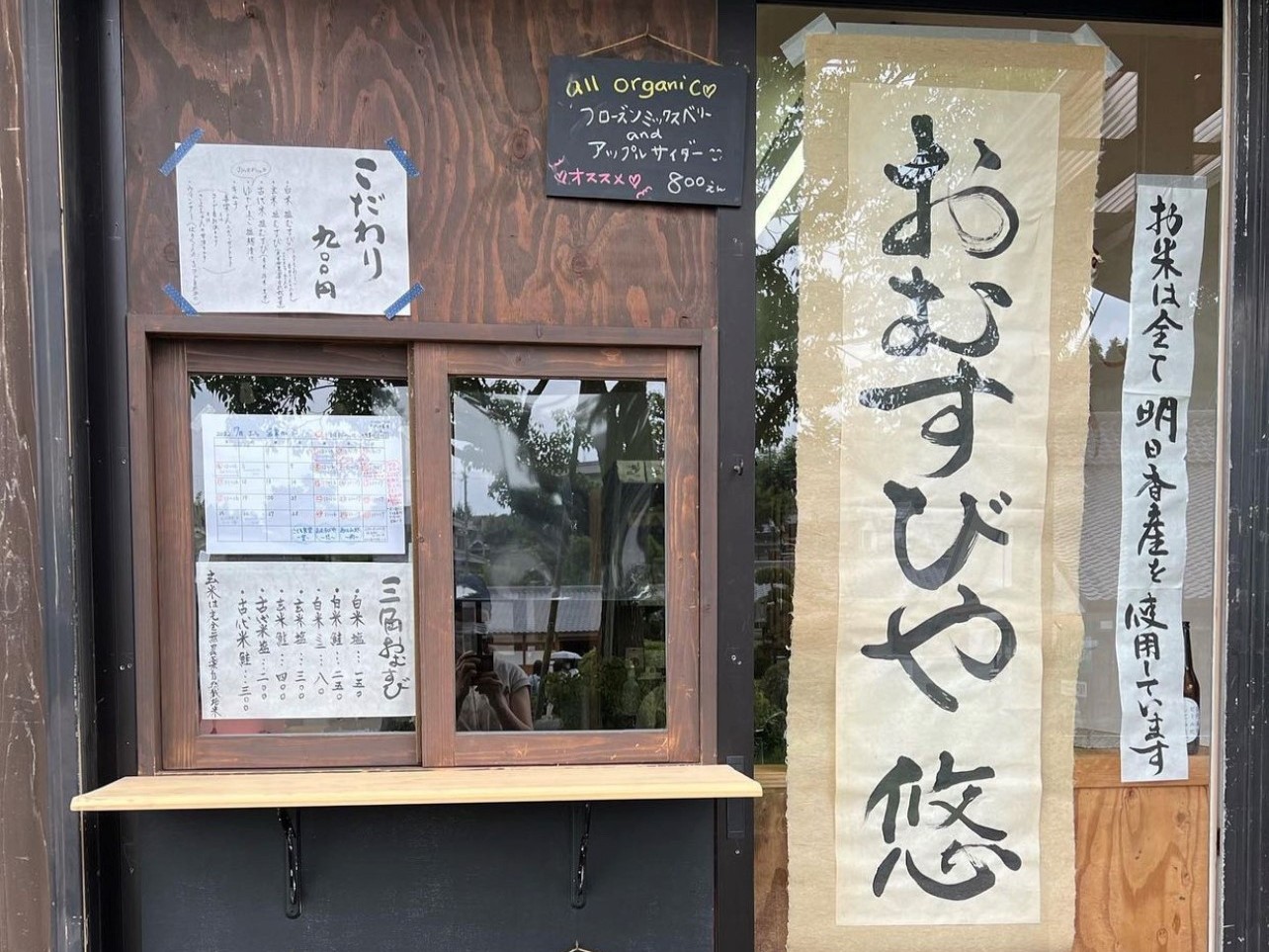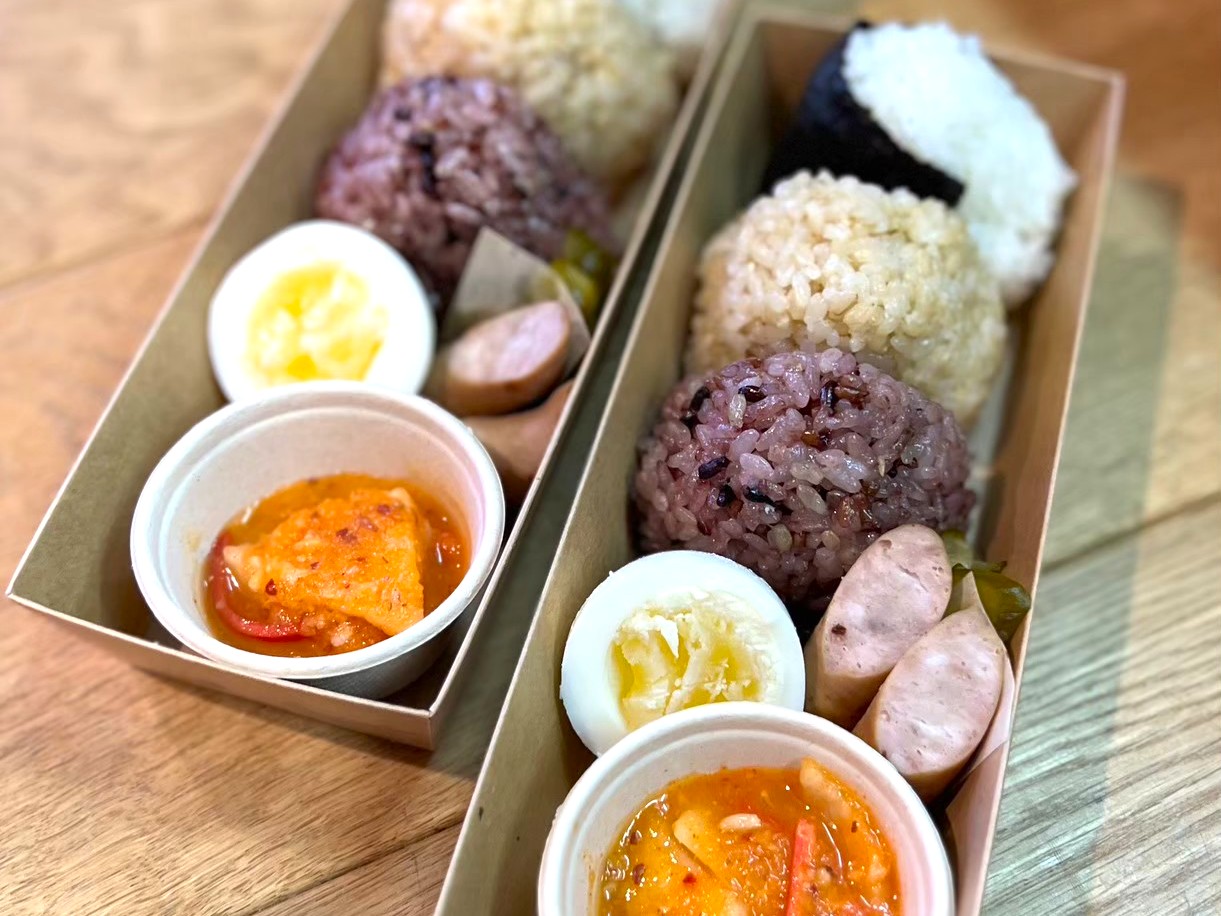 白米・古代米・自然栽培玄米の3種類から選べるおむすびは、すべて明日香村産のお米を使用。海苔や塩・具材なども、こだわりの素材をつかっています。注文が入ってからつくる、つくりたてのおむすびをぜひ味わって。おむすびの他にお弁当のご用意もあります。