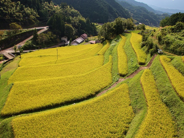 山や谷の傾斜地を利用した田んぼ、棚田。村内各所にあり、四季折々の美しい表情を見せてくれます。